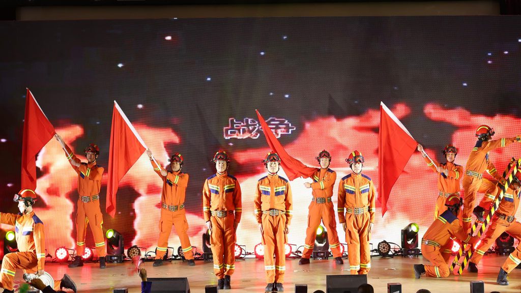 朗诵《新金煤、新征程、燃动新岁、跃马逐光》以深情文字抒发全体金煤人的共同愿景,歌曲《狼图腾》唱出攻坚克难、永不言弃的拼搏精神,刚劲有力的军体拳《战争就在下一秒》更彰显出员工们纪律严明、能打胜仗的团队作风。